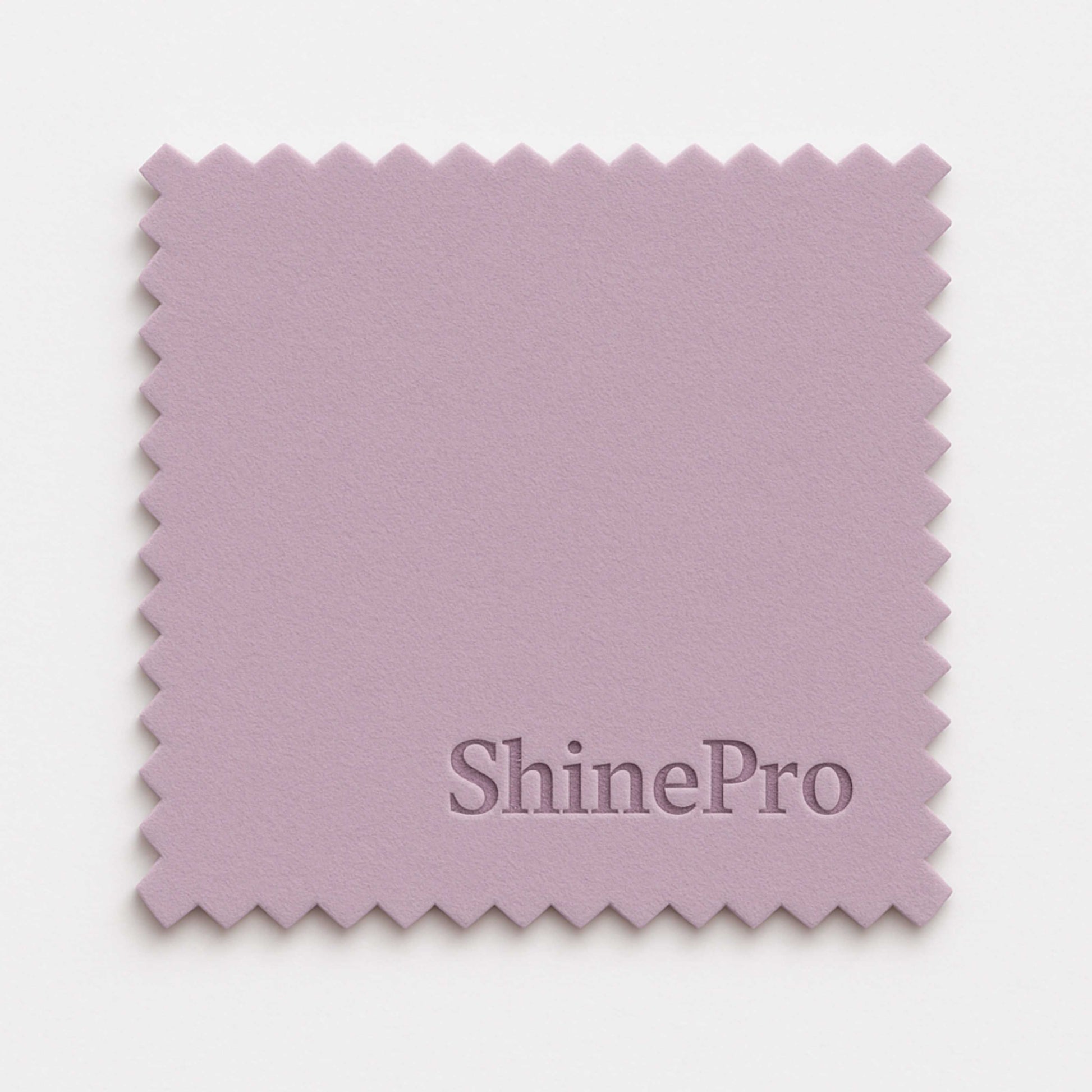the ShinePro™ Jewelry Cleaning Cloth is crafted from high-quality, suede-like microfiber designed to gently and effectively restore the natural brilliance of fine jewelry. Its soft lavender tone reflects understated elegance, while the material ensures safe use on gold, silver, platinum, and delicate gemstones.